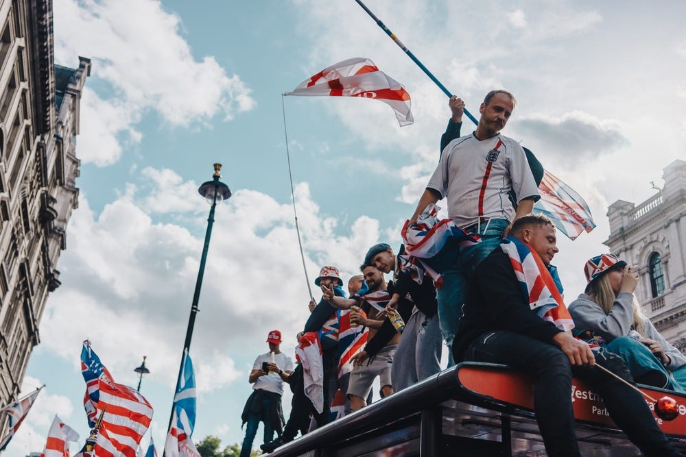 Wow, I feel for you. As a brit solely by virtue of birth (with 2 foreign parents and a funny name) I totally get you, and the flag-shaggers make my hair curl. Brexit was already a kick in the guts and this display reminded me of the NF marches when I was a student in London. Meat heads will be meat heads but I wish that Farridge git would eff off and stop demagoguing all over the place: as for Yaxley-whatever he needs a good slap. And don't get me started on the toxic pos who got shot. I love this country too but sometimes....